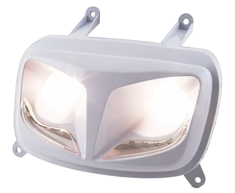 Avec son design novateurs et ses LED intégrées en forme de moustache, ce double optique se monte en lieu et place de votre phare avant d'origine, sans autres modifications spécifiques.