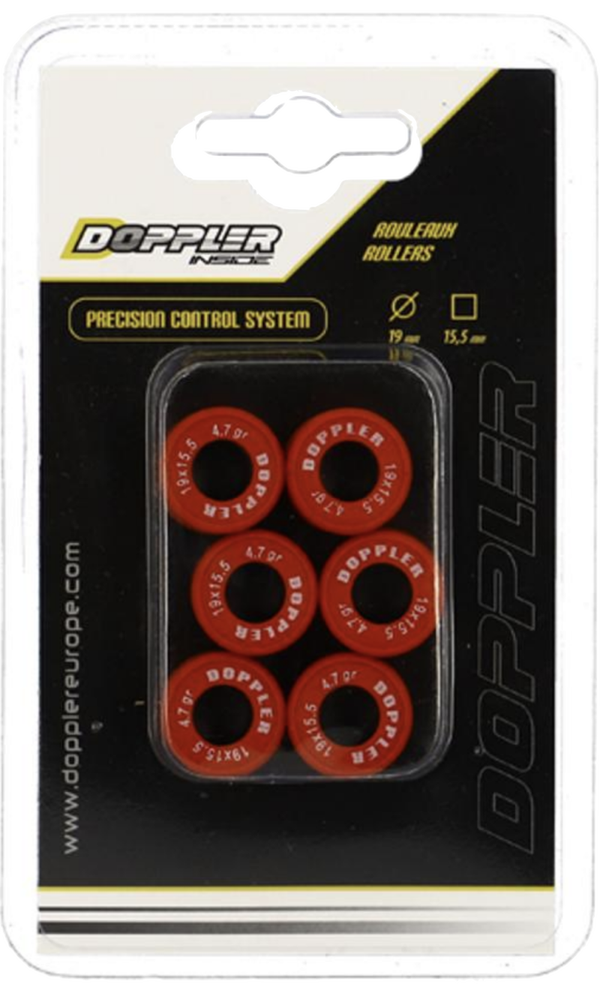 Les galets DOPPLER sont livrés par 6, ils sont fabriqués dans un matériau synthétique à haute résistance et à faible coefficient de frottement. Les différents poids de réglage permettent d'ajuster la variation de façon précise.